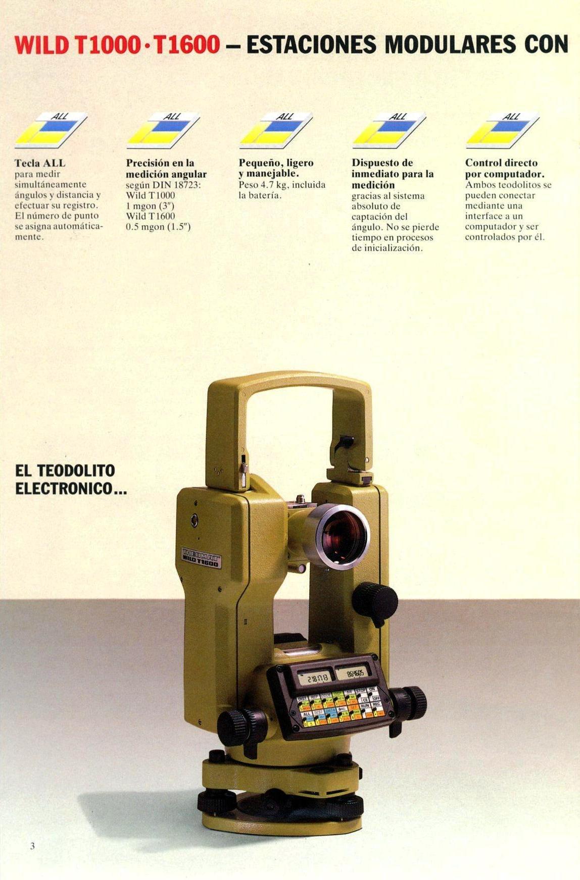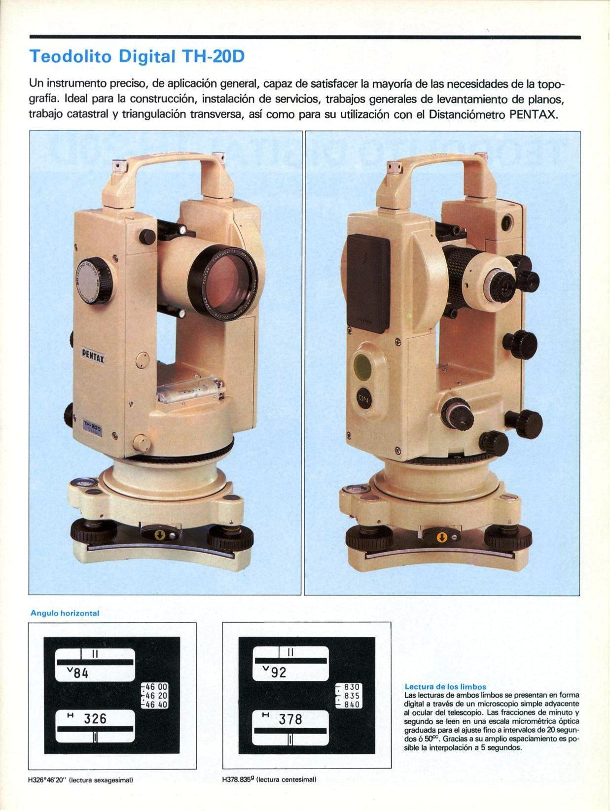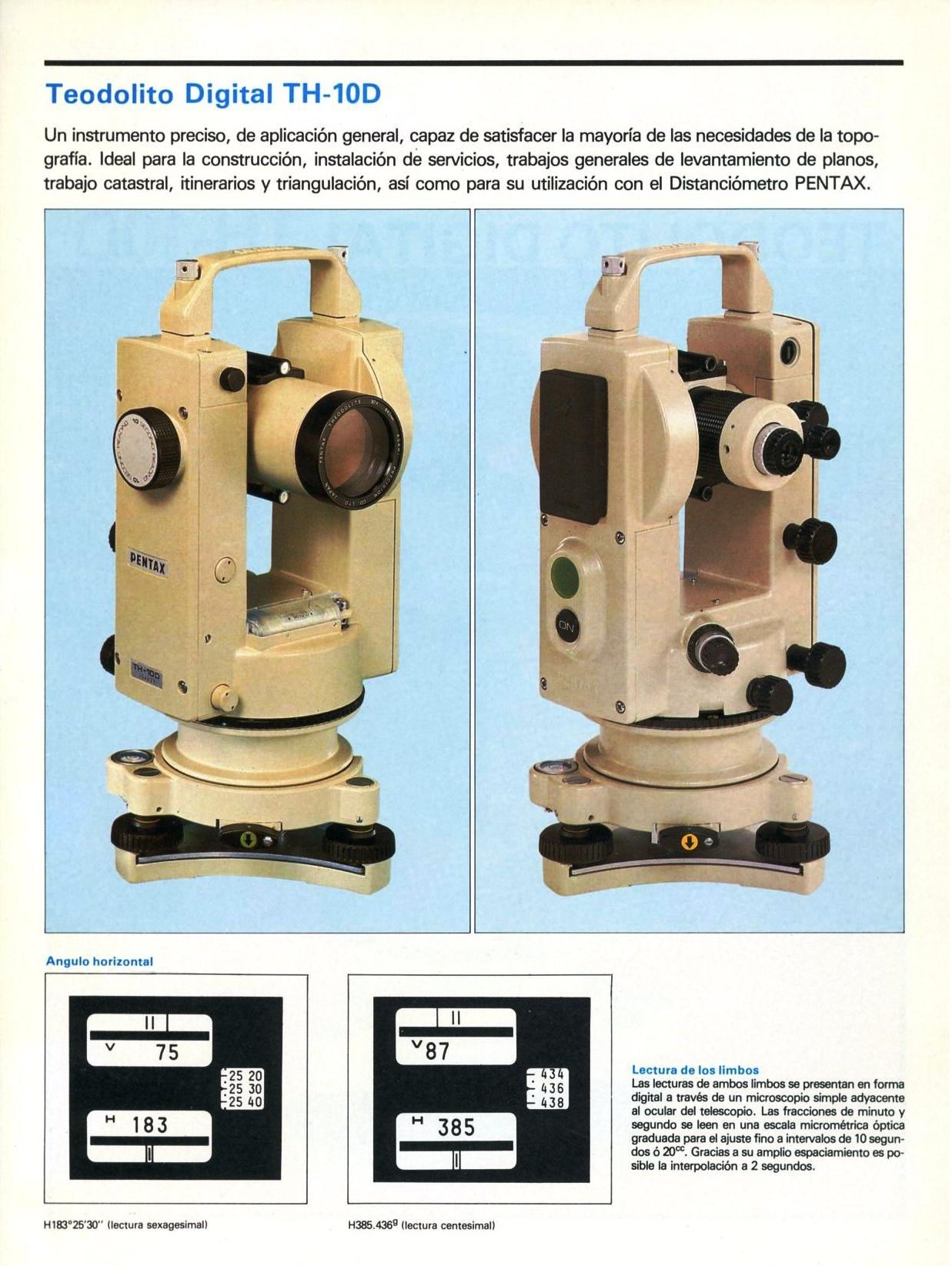 Teodolitos con limbos electrónicos y lectura digital en pantalla, generalmente con capacidad de registro digital en memoria electrónica. Componente adecuado para las estaciones totales modulares.