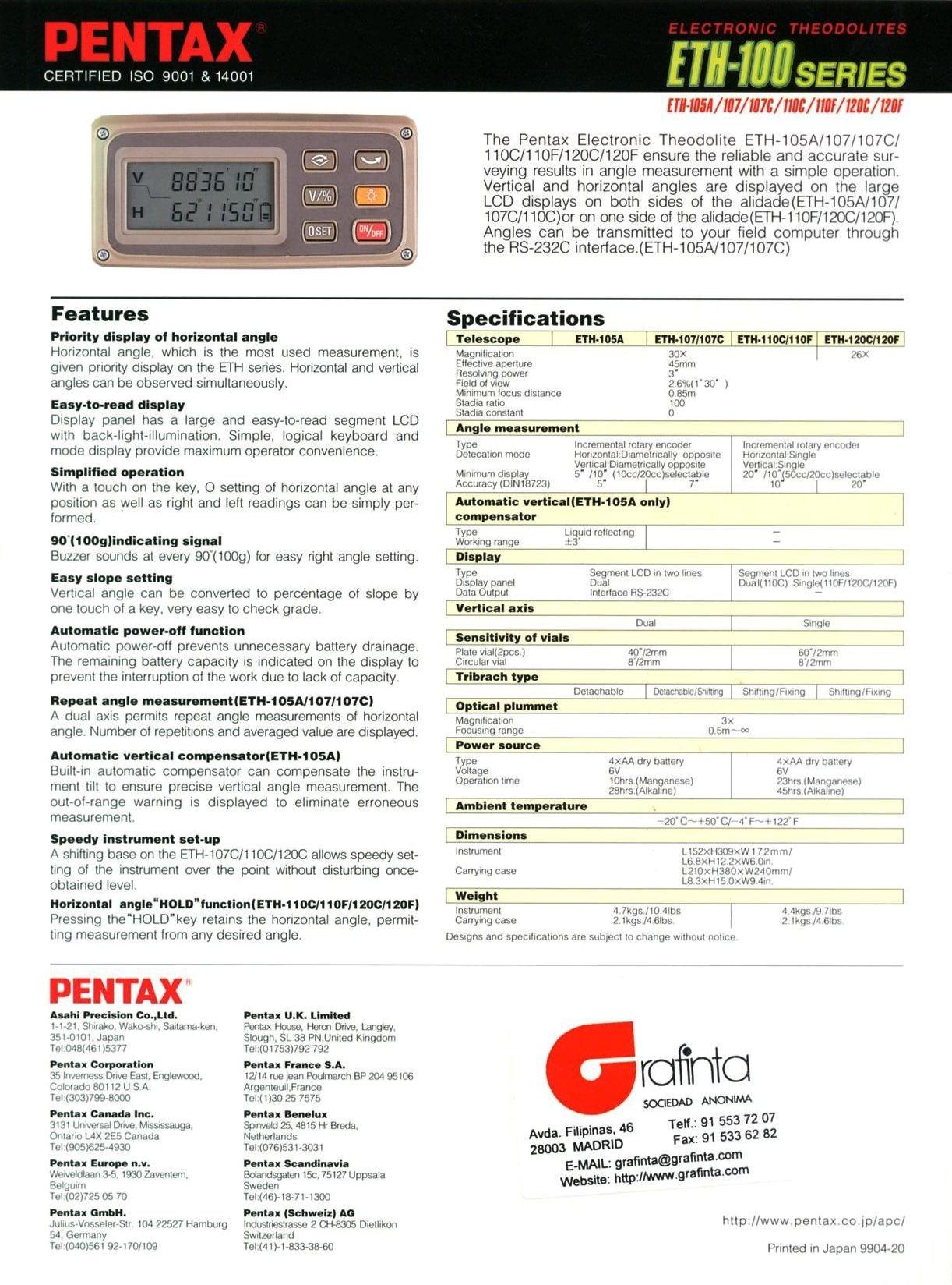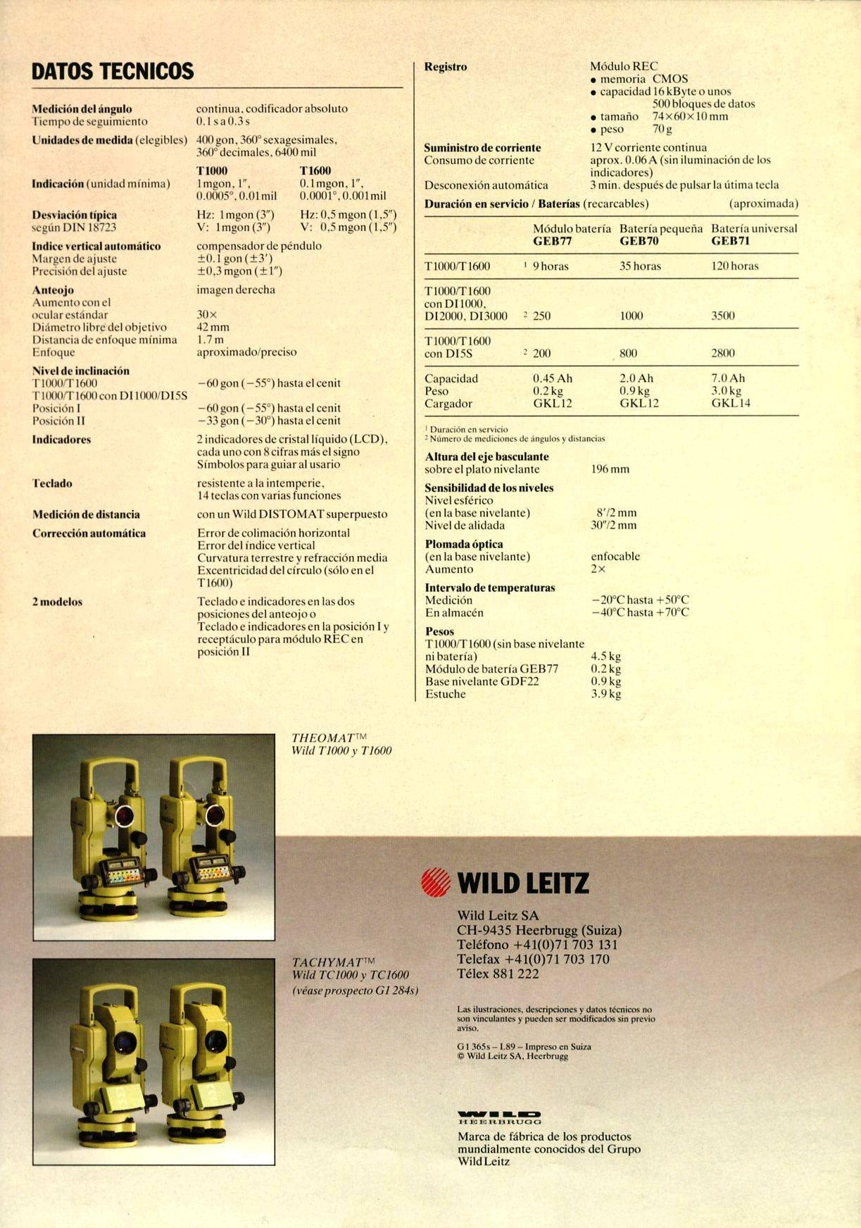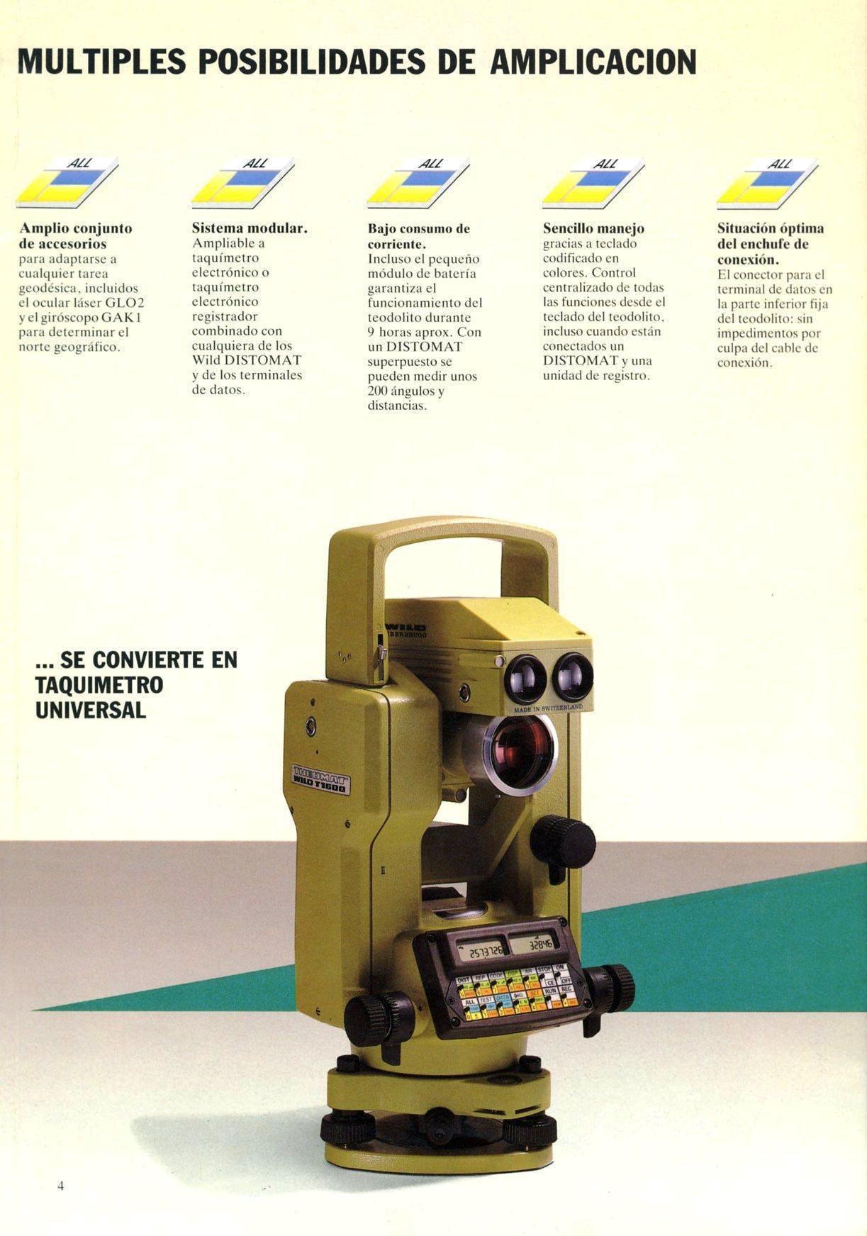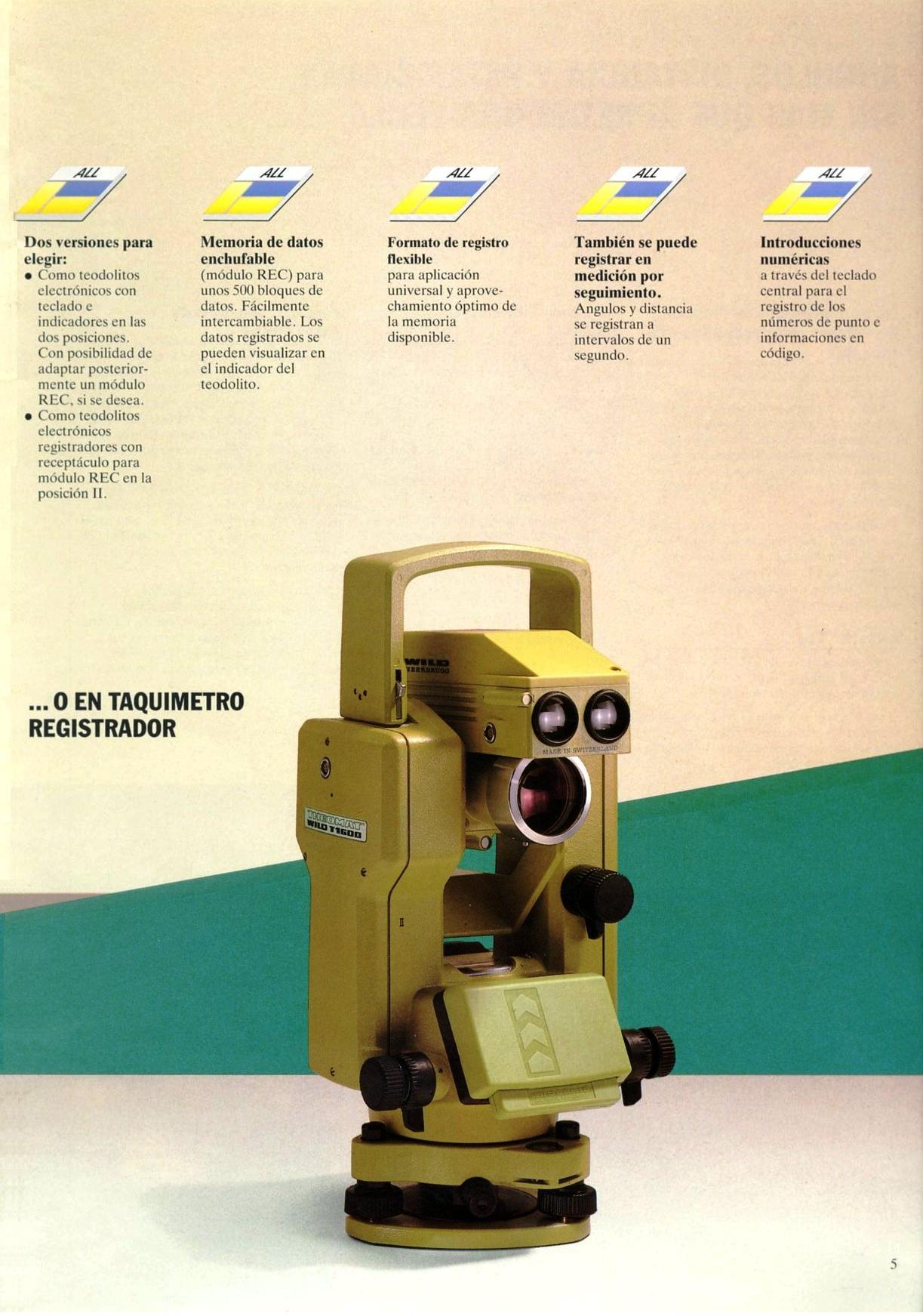Teodolitos con limbos electrónicos y lectura digital en pantalla, generalmente con capacidad de registro digital en memoria electrónica. Componente adecuado para las estaciones totales modulares.